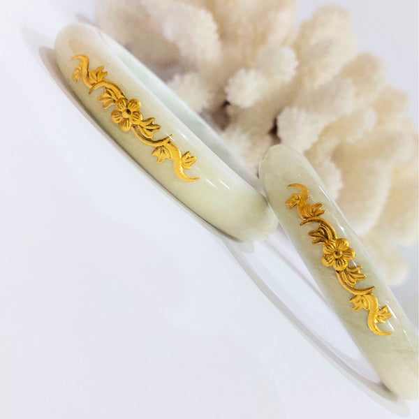 Light Green Jade & 24K Gold Bangle – Premium Nephrite Jade