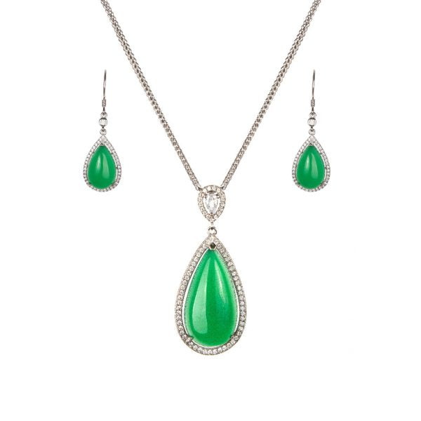 Tiana Women’s Silver and Green Agate Jewelry Set