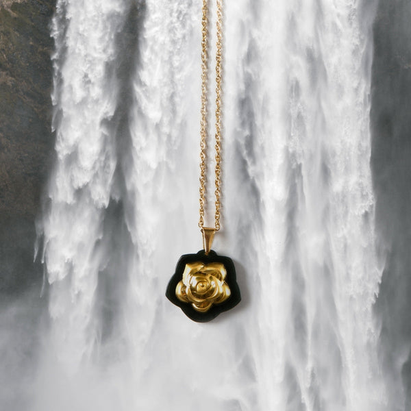 A handcrafted necklace featuring rich, deep green Nephrite Jade and genuine 24K gold leaf — blending elegance with emotional healing and inner strength. A perfect symbol of love, purity, and serenity.